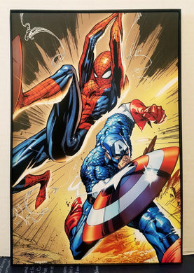 Captain America & Spider-Man by J. Scott Campbell 8x12 FRAMED Marvel Art Piece